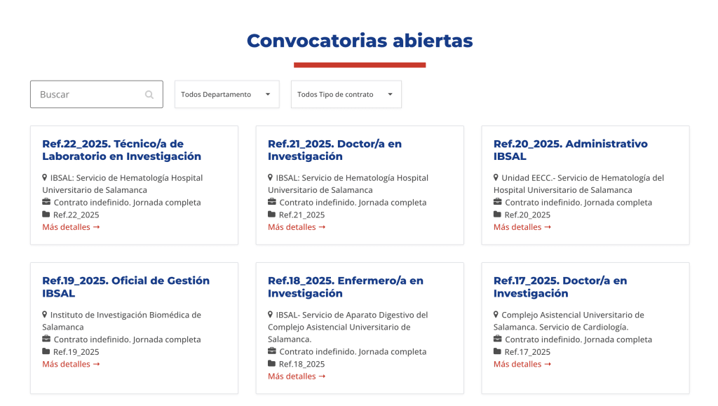 Incorporamos funcionalidades avanzadas como la gestión de ofertas de empleo y el sistema de inscripciones a cursos y formaciones. Automatizamos procesos internos para optimizar el flujo de trabajo del personal del IBSAL permitiendo un acceso más ágil y ordenado a la información importante.